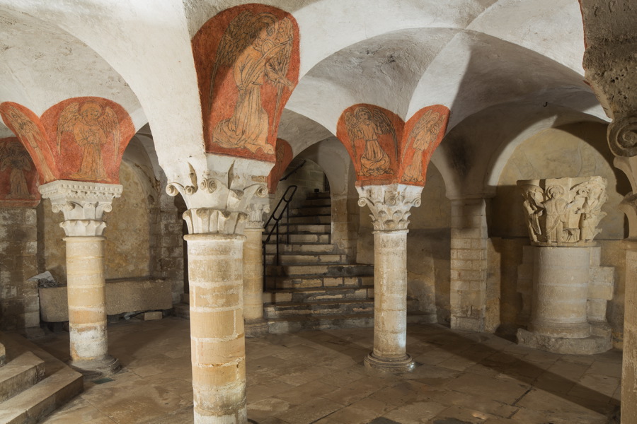 Le premier niveau de la nef, très décoré, est roman. La façade romane comporte cinq porches gothiques (deux sculptés). A noter : crypte romane, belle chaire de 1786, peintures murales des XIIIe et XVe s. et bâtiments annexes (chapitre, avec labyrinthe, bibliothèque).